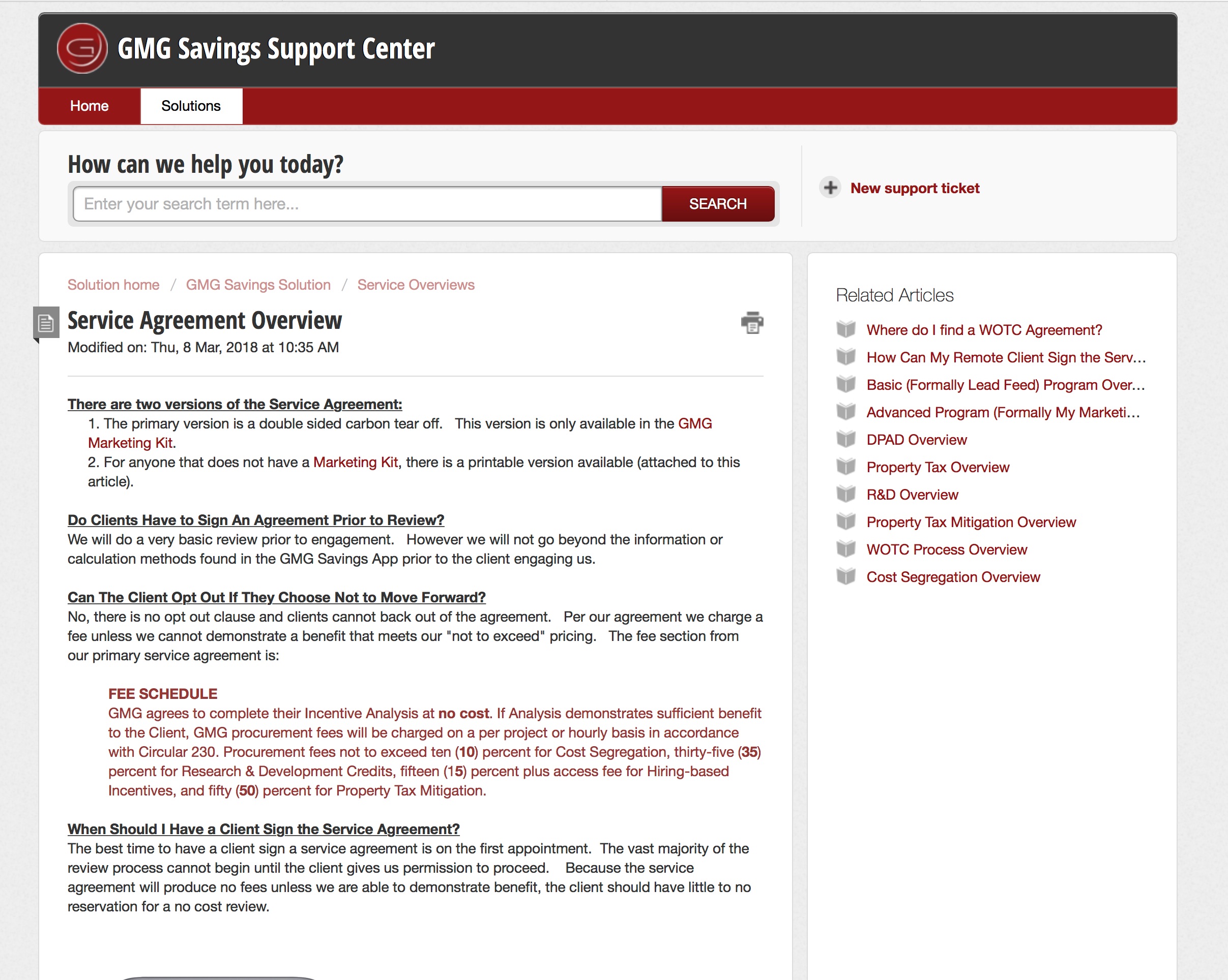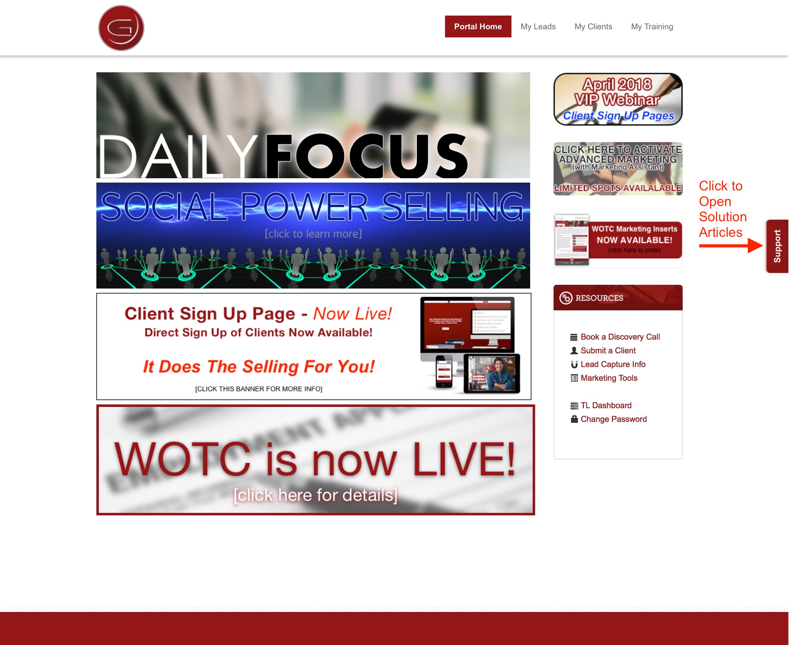 When in your Portal, you can click on the red Support button to open this Solutions Base.